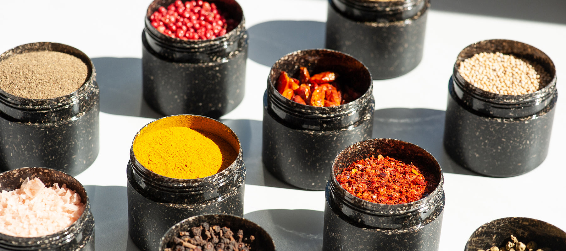 Das Markenzeichen unserer Gewürzmischungen: die bunten Streifen. Sie lassen unsere Gewürzdosen nicht nur unheimlich schön aussehen, sie verraten Euch auf einen Blick: hier kommt nur das Beste rein – und sonst nichts. Jede Farbe steht für ein Gewürz, von oben nach unten ergibt sich die Zutatenliste. Salz? Zucker? Fehlanzeige. Wir arbeiten ausschließlich mit besten Einzelgewürzen, deren Qualität uns restlos überzeugt.